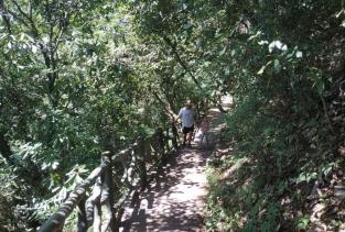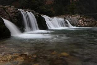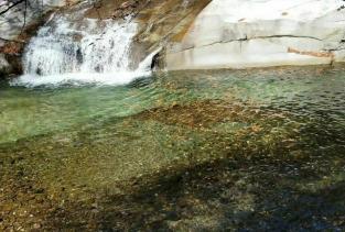 十八月潭就是一条山涧从上流下,形成很多水潭和瀑布,进了景区有两条路,分别通上游和下游的停车场,建议从上游往下游览,因为爬坡是比较累的。景区有摆渡车,收费十元,负责运送上下停车场的人员,因为走个来回还是受不了。十八