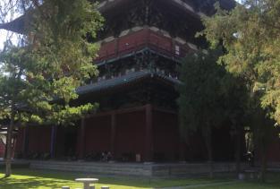 开始登山,15分钟到达索道做索道上行,为了节省点体力好爬驼梁。大山十分险峻陡峭,一路经过白桦林木栈道,景色很美,五一了山中还有些雪没化。走过鸳鸯石,到达寨倾。稍歇片刻直奔主峰(小泰山),一览众山小!接着返回寨倾,开始向云顶草原进发!走了半小时路上空无一人,我有些害怕了。因为要穿越原始丛林,我停下来等了等才见一男一女一狗过来了,哈哈哈,我就和他们搭伙前行了。一个半小时后到达长空木栈