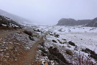 新年自驾东嘎冰川随笔,风雪东嘎冰川,东嘎冰川属于来古冰川,2022年春节,早起推窗一看,没有日出,并且昨晚应该是下了雪。九点出发,贵州的4位帅哥全部骑马(300元一人),我徒步蹭向导。雪后的来古村,水墨画面感,虽然没有阳光,