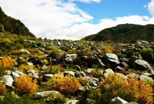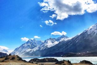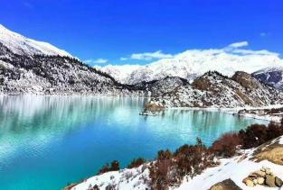 然乌湖的美可以用绝美来形容,尤其是深秋和初冬交错之际。狭长的湖向西蜿蜒十余公里逐渐收缩成一道河谷,随季节的不同,河水也呈现出或碧蓝或青绿等数种颜色。河道中许多岩石和小岛点缀其间,湖面上春季树影婆娑秋冬薄雾弥漫,四