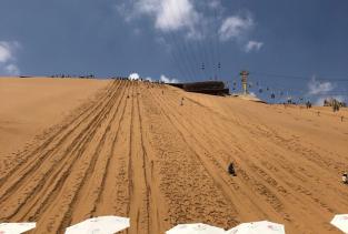 作为沙漠主题的景点而言,沙坡头在娱乐性上是做的最好的,当然我是指以娱乐为目的,如果是以观景或探险为目的,可以往更大更深的沙漠去,景观也更原始壮观,但大多数人去沙漠仅仅是为了安全的体验一下风情,参与一下项目,那沙坡头是非常不错的选择。所谓沙坡头其实也就是腾格里沙漠最靠近中卫市区的那一片,当年王维在这里写下了长河落日圆,大漠孤烟直的千古名句。景区很大,分为黄河区和沙漠区,项目主要有游艇、羊皮筏、滑索、滑沙、骑骆驼、沙漠冲浪、滑翔七种,其中滑索和滑翔是单买项目,每个100元,其余五个打包联票285元,推荐买这个