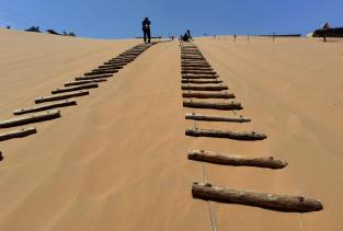沙坡头和通湖草原一样同属腾格里沙漠。但是这里不仅有沙漠,绿洲,还有黄河,戈壁,四景合一,壮美!今天的天气不太好,阴沉沉的,但是温度很适合,很凉爽。这个沙漠与其他两个最大的不同在于,在这里可以看到人类改造自然的力量。从我国第一个沙漠研究站在这里建立,治沙奇迹就在这里产生。治沙工程采用“麦草方格”的技术,逐步让大漠变绿洲。